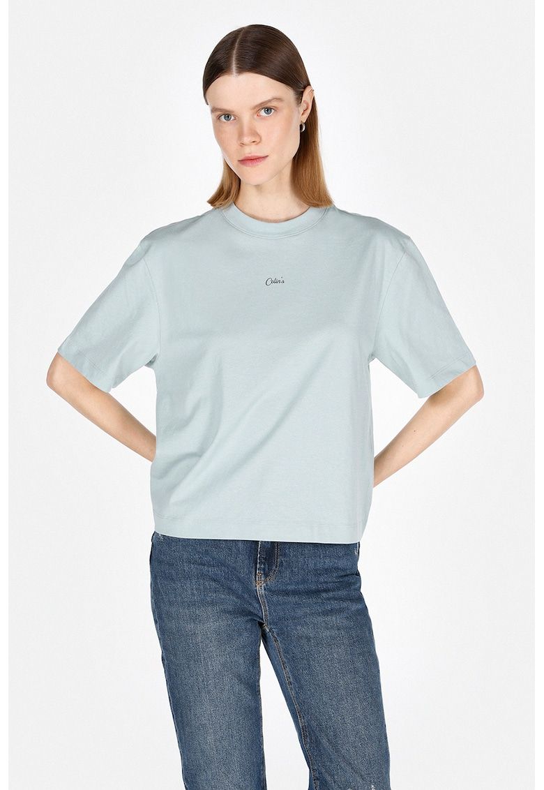 Caracteristici Culoare: verde pal Imprimeu: uni Material: bumbac Croiala: lejer Model: decolteu la baza gatului Lungime maneca: maneca scurta Compozitie Exterior: 100% bumbac