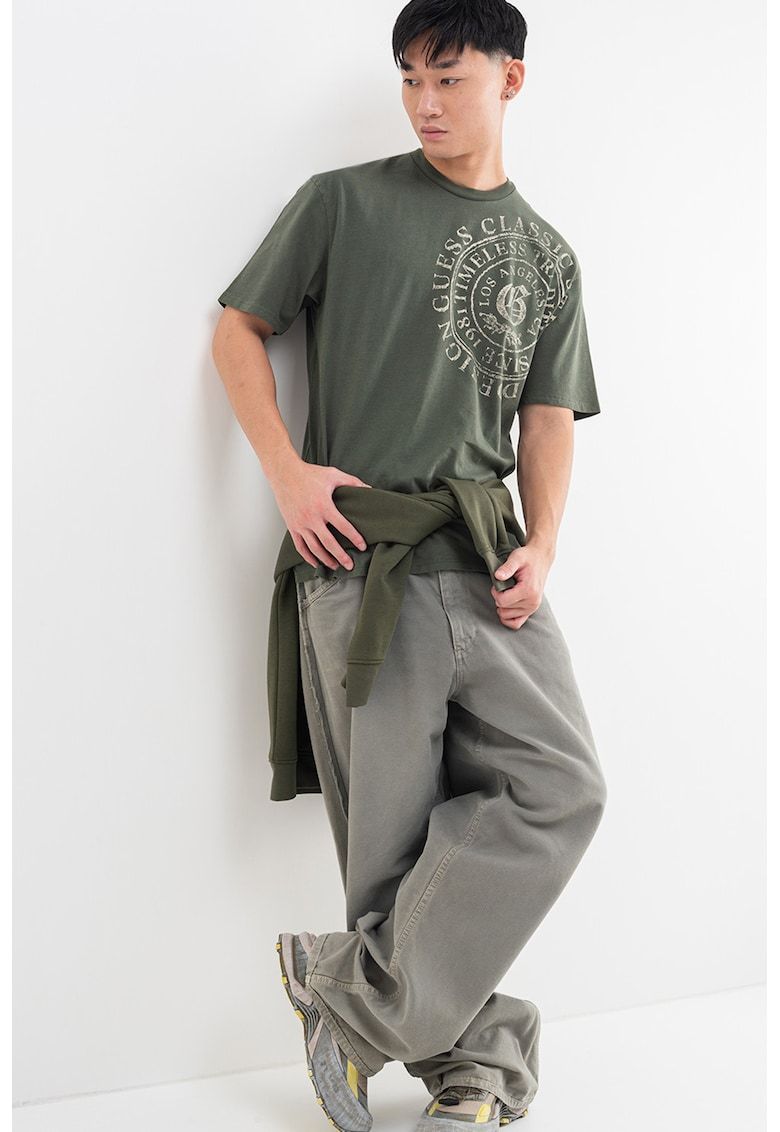 Caracteristici Culoare: alb fildes - verde militar inchis Imprimeu: logo Material: bumbac Croiala: lejer Model: decolteu la baza gatului Lungime maneca: maneca scurta Compozitie Exterior: 100% bumbac Info model Modelul poarta un produs de marimea M. Marimi model: 183 cm inaltime - 96 cm bust - 71 cm talie - 95 cm sold