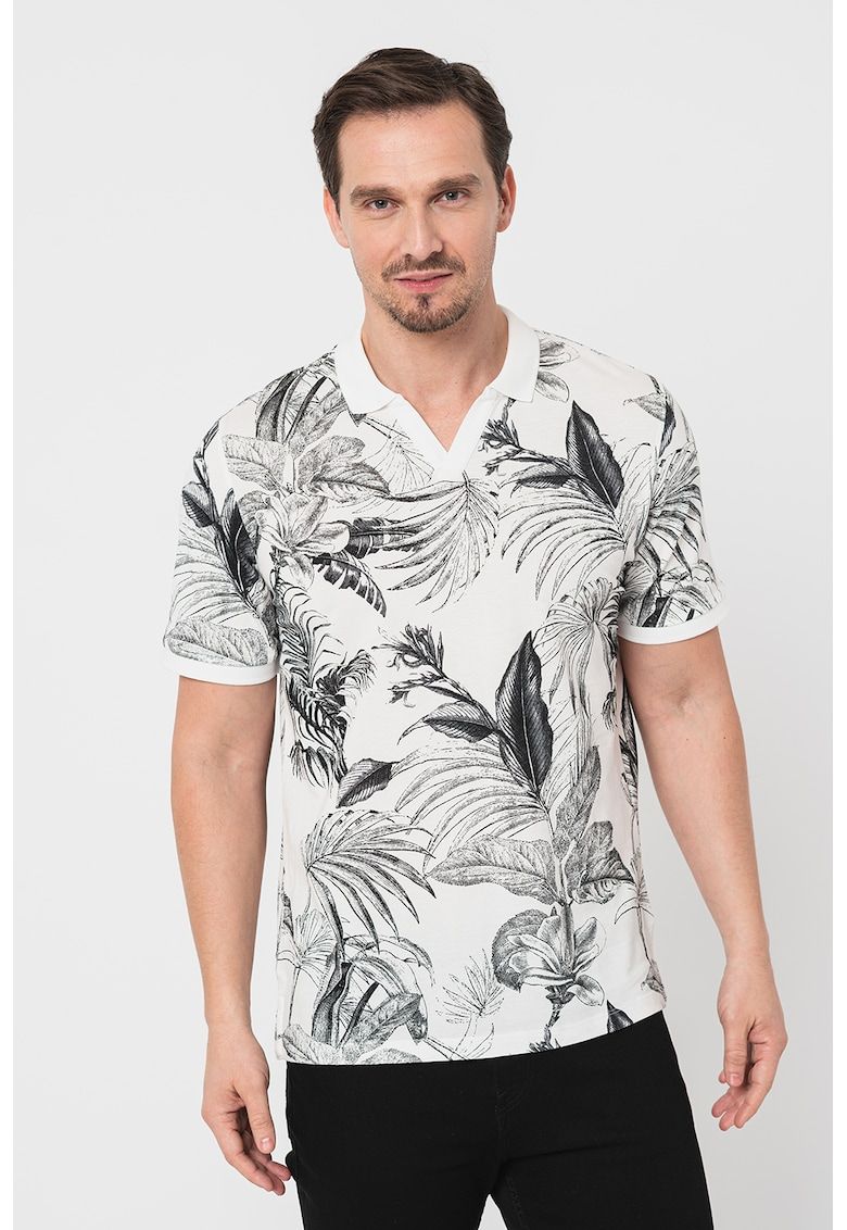 tricou polo cu imprimeu tropical