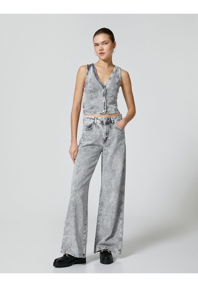 vesta crop din denim cu decupaj