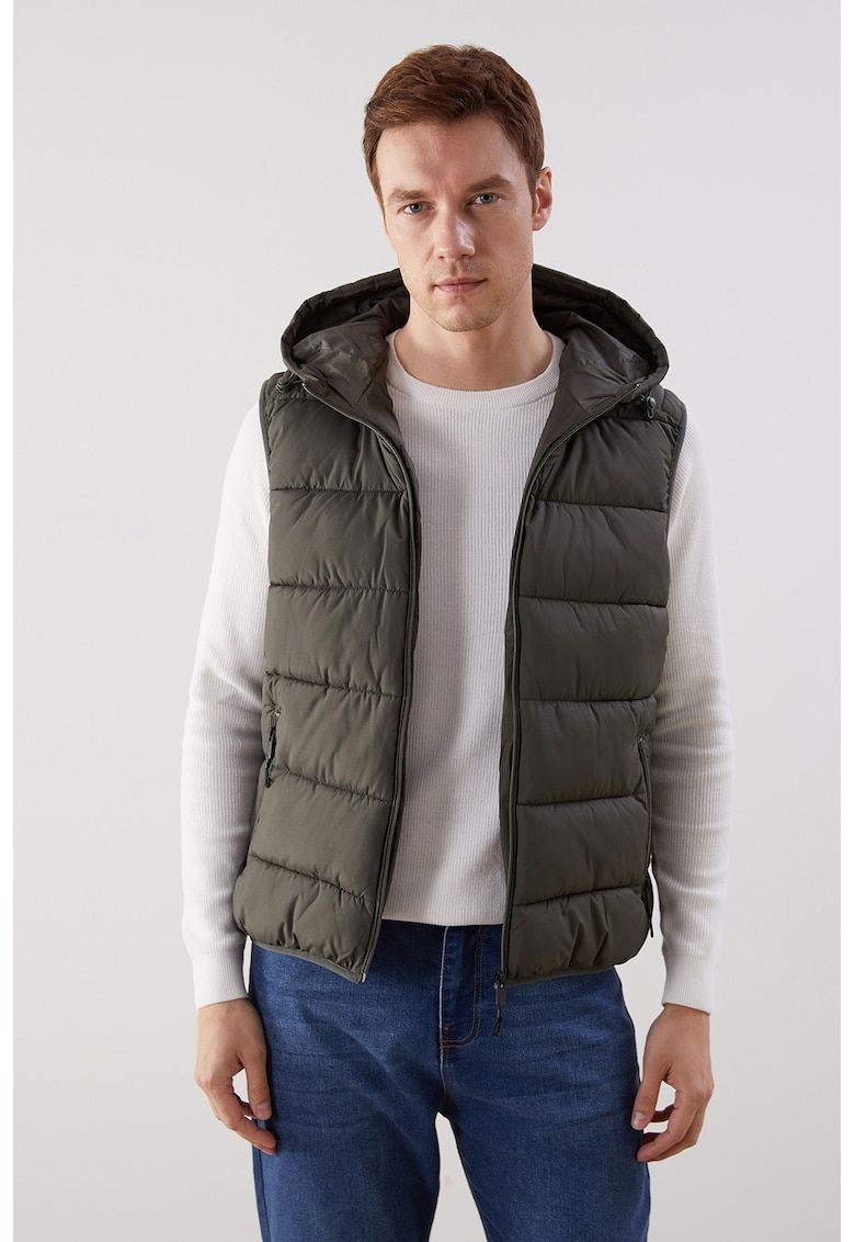 Caracteristici Tip produs: vesta Culoare: gri inchis Material: poliester Croiala: regular fit Imprimeu: uni Gluga: cu gluga Lungime maneca: fara maneca Buzunare: 2 buzunare oblice cu fermoar Sistem inchidere: fermoar Compozitie Exterior: 100% poliester