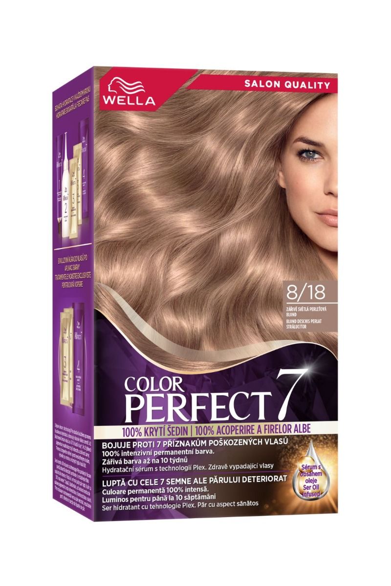 vopsea de par permanenta blond deschis perlat stralucitor 8/18 color perfect, 135ml, wella